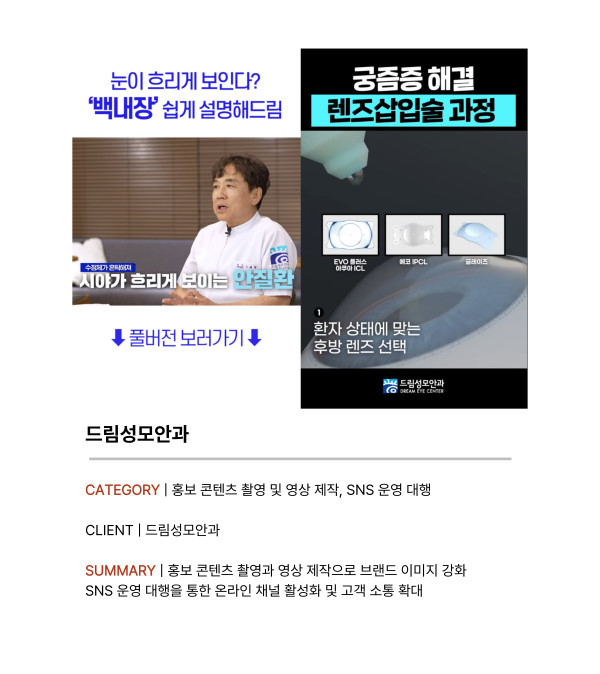[의료] 드림성모안과 브랜드 SNS 운영